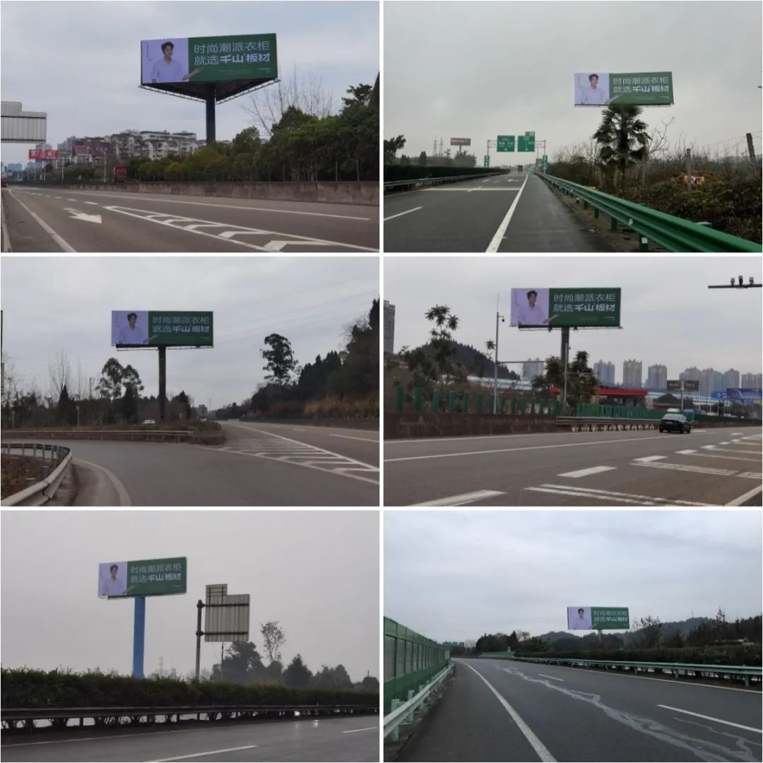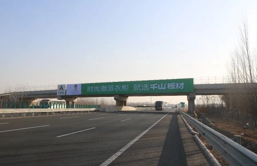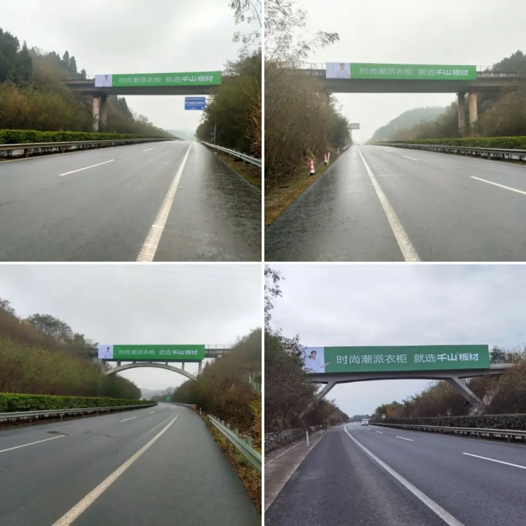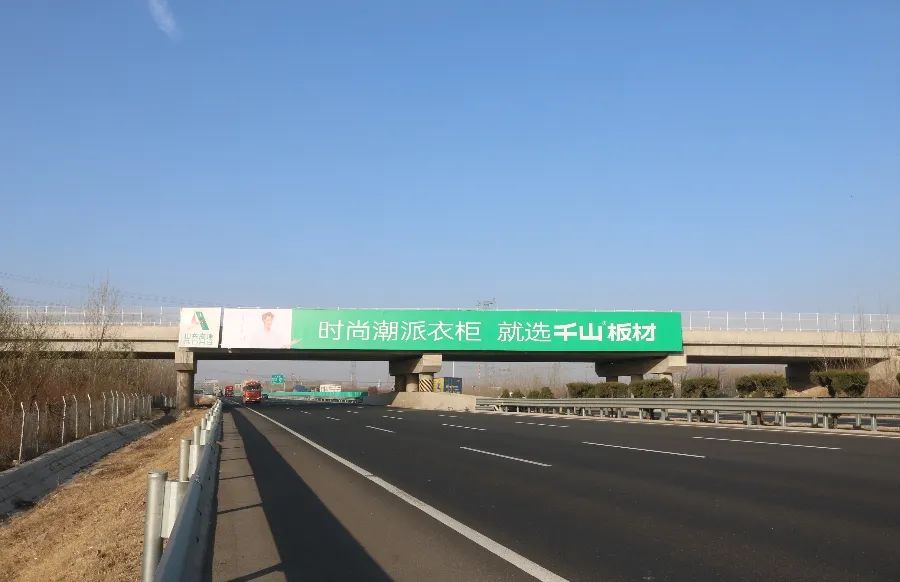 本次高速廣告形式依舊涵蓋跨線橋、單立柱,以千山2.0品牌色調(diào)綠色為主色調(diào),展示了全新品牌代言人李晨以及全新品牌LOGO。廣告畫面鮮艷、美觀、簡潔,進一步將“時尚潮派衣柜 就選千山板材”的品牌主張傳遞給更多的消費者。