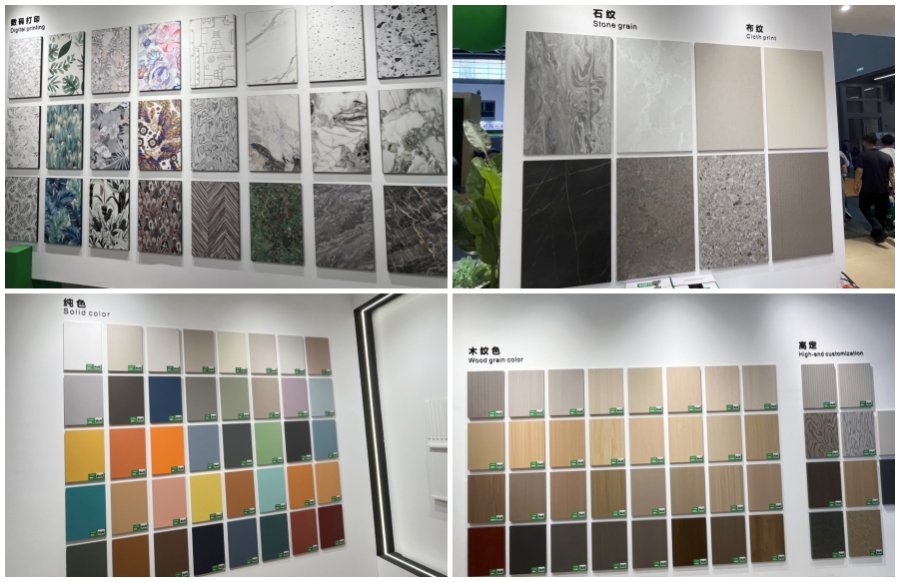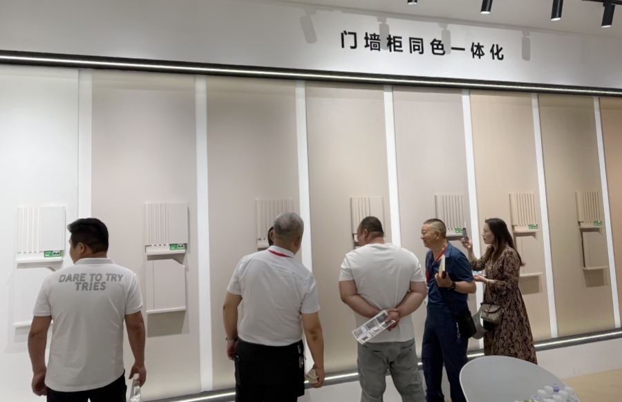 千山板材擁有的內直外圓陽角、L型、U型(抽屜)、圓柱、門套9大規格圓弧產品,同步15款花色,充分滿足不同的應用場景,成為展會現場炙手可熱的門墻柜一體化產品。