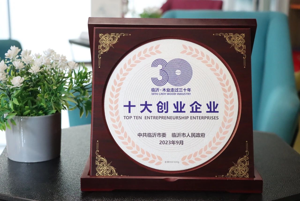 2023年9月,由臨沂市人民政府與中國林產工業協會聯合主辦的“第八屆世界人造板大會”在板材之都臨沂隆重召開。作為板材之都龍頭企業,千山受邀出席本次大會,并在“臨沂·木業走過30年”頒獎慶典中榮獲“十大創業企業”榮譽。