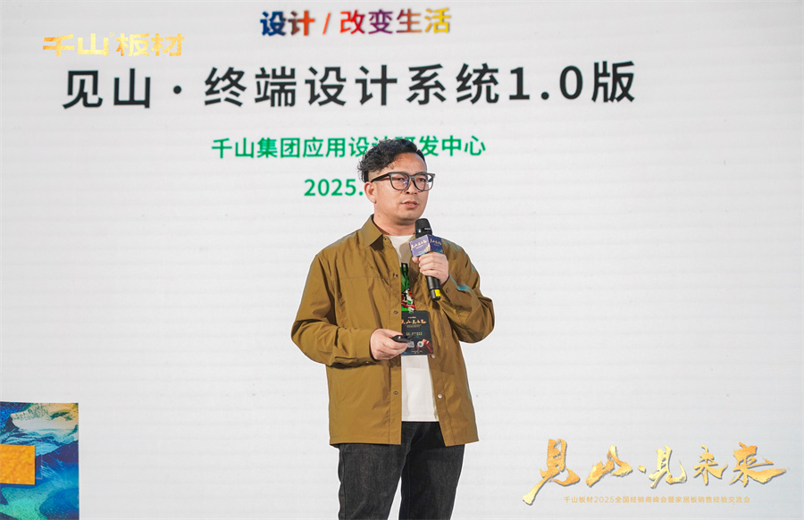 千山應(yīng)用設(shè)計(jì)研發(fā)中心朱云周總監(jiān)詳細(xì)闡述了“見山-終端設(shè)計(jì)系統(tǒng)1.0版”,基于風(fēng)格邏輯、色彩邏輯、材質(zhì)邏輯打通終端應(yīng)用,確保落地場(chǎng)景的呈現(xiàn)效果,賦能終端來解決客戶需求的痛點(diǎn)問題,從而有效助力經(jīng)銷商的運(yùn)營發(fā)展。