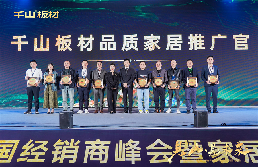 劉董為李晨先生授予“品質(zhì)家居體驗(yàn)官”,同時(shí)為十位在千山板材銷售領(lǐng)域表現(xiàn)卓越的經(jīng)銷商授予了“品質(zhì)家居推廣官”榮譽(yù),不僅是對(duì)他們過去一年里在提升家居品質(zhì)、推廣優(yōu)質(zhì)板材方面所做出杰出貢獻(xiàn)的肯定,也是對(duì)他們未來繼續(xù)引領(lǐng)家居潮流、傳遞品質(zhì)生活的期待與鼓勵(lì)。