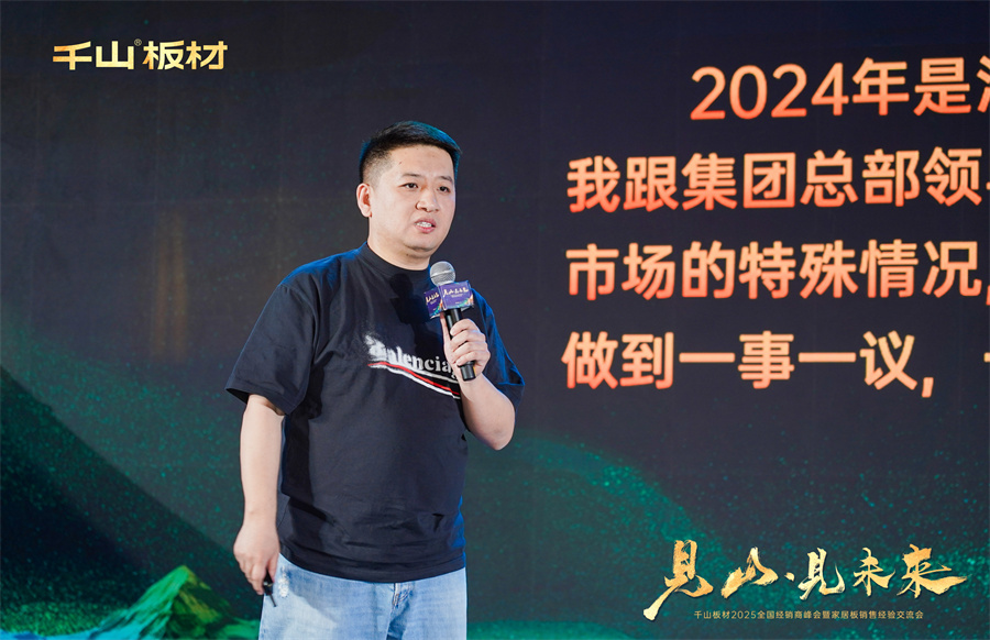 經(jīng)銷商峰會(huì)在千山集團(tuán)董事長(zhǎng)馬彥慶的精彩致辭中拉開序幕,馬董向全國經(jīng)銷商伙伴致以誠摯問候。馬董表示千山將以全產(chǎn)業(yè)鏈、產(chǎn)品領(lǐng)先、品牌發(fā)展、智造驅(qū)動(dòng)為戰(zhàn)略主軸,深耕家居板塊,積極探索家具板的增長(zhǎng)曲線,實(shí)現(xiàn)高質(zhì)量、可持續(xù)發(fā)展。