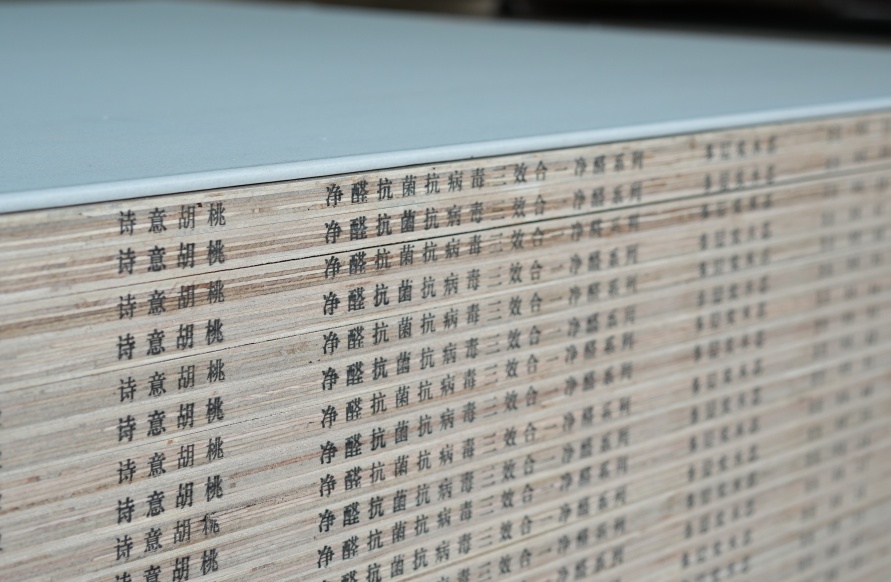 正品千山板材表面都印有隱形防偽標(biāo)識,使用紫光手電筒照射板材表面,顯現(xiàn)“千山板材” 或 “千山板材ENF”水印,凈醛板顯現(xiàn)“凈醛 抗菌 抗病毒”水印。